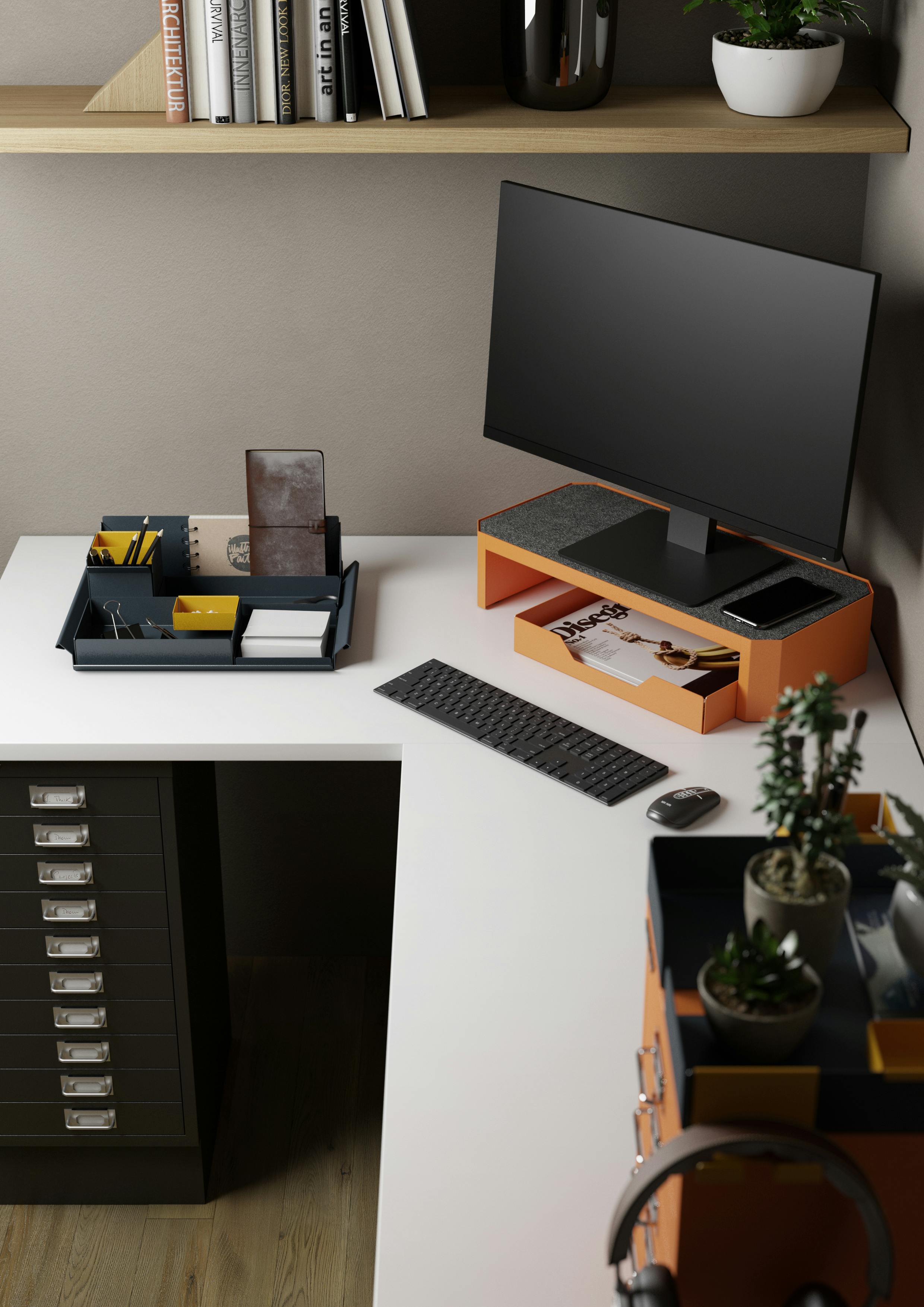 Améliorez votre journée de travail avec la gamme Platform. Nos journées de travail étant souvent plus longues ou plus flexibles, il est essentiel que la hauteur de nos écrans soit adaptée à nos besoins et à notre confort. La gamme Platform est disponible en deux largeurs pour différents écrans et besoins ; son design minimaliste permet à votre écran d'être toujours à la bonne hauteur.